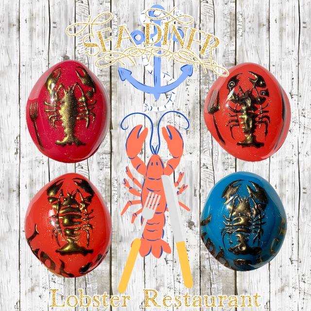 魔法石キャンディリング、海の生き物たちのシリーズ【SEA DINER】より新作をお届け! 今回の絵柄はロブスター。 両脇にナイフとフォークを描いたものと、下部にLobsterの文字が書かれたもがあります。 タコやカニ、お魚たちとの組み合わせも! とれたての魚介を美味しく調理してくれるシーフードレストラン【SEA DINER】(流石に魔法石から逸脱しているかもしれない…) 不揃いな形と透け感あるカラー、立体的にも見えるゴールドで描いた様々な絵柄たち。 魔法が宿っていそうな雰囲気から魔法石みたいな、でもキャンディっぽさもある…ということで、そのままマジカルストーンキャンディリングと名付けました。 リング台座はすべてゴールド。 調節可能なフリーサイズのステンレス製です。 ※粘土はひとつひとつ形成しており、こちらは特に形や大きさを敢えて不揃いにしています。 ※絵柄はすべてフリーハンドで描いています。 ※パーツはレジンコーティングしています。