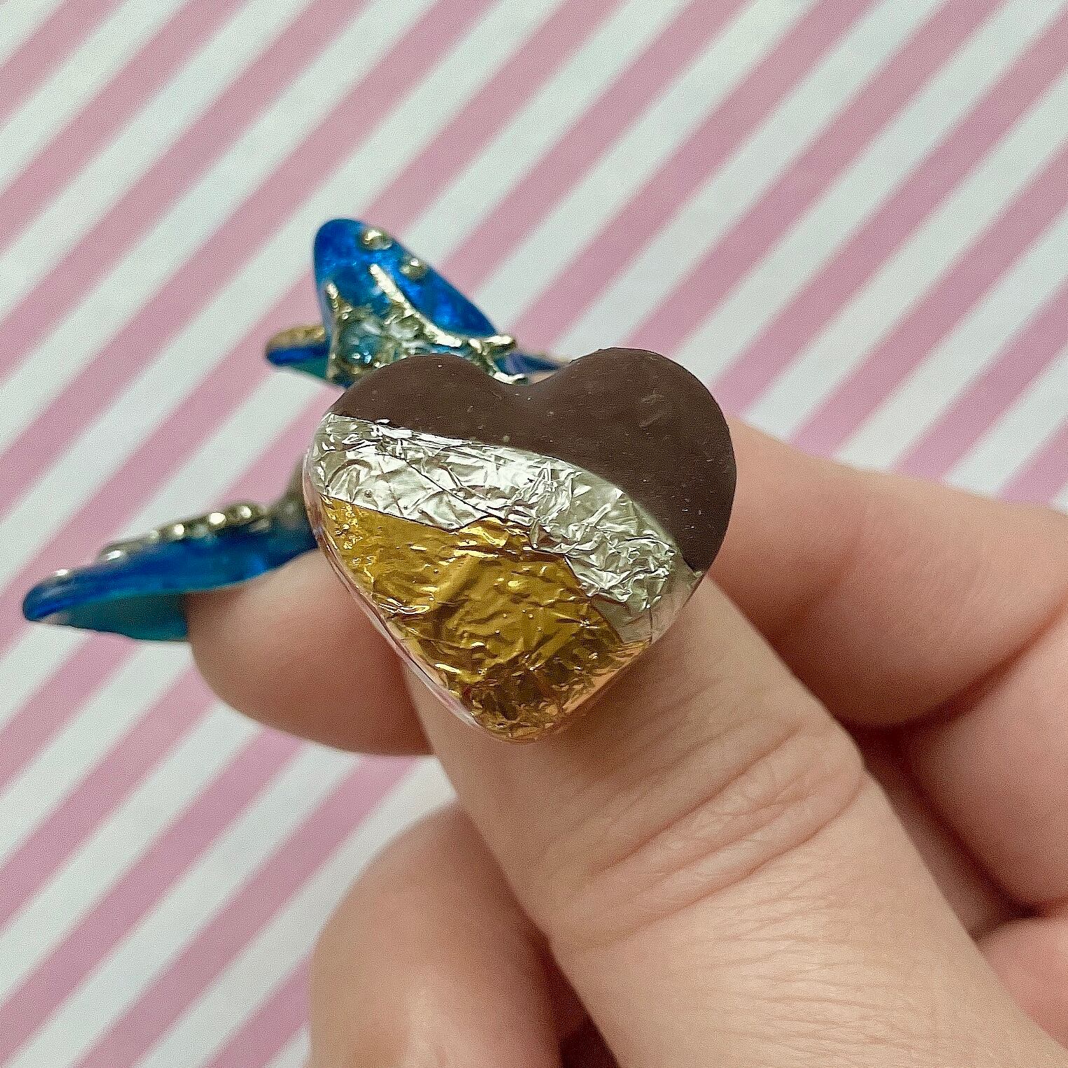 カラーホイル包みのハートチョコレート、初代のカラーに2種類をマット使用でお作りしました♡