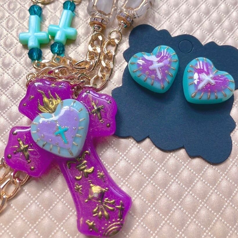 こちらはいつものアミュレットクロスネックレスとは異なり、透け感のあるベースが特徴的です。