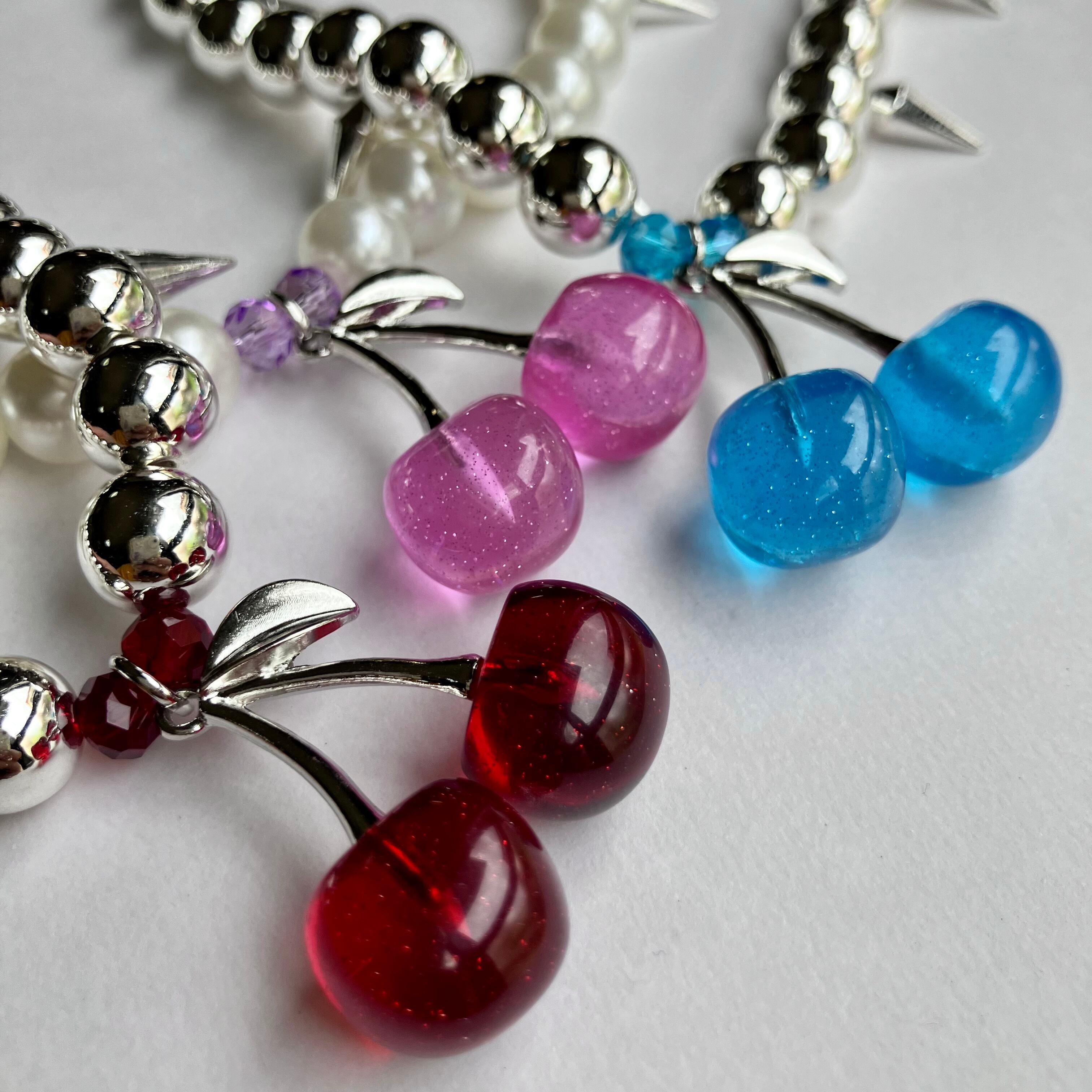 上品パールにガーリーなチェリーモチーフも、シルバースパイクでちょっぴりクールにきまる!シンプルだけどひとつで存在感あるアイテムです♡
