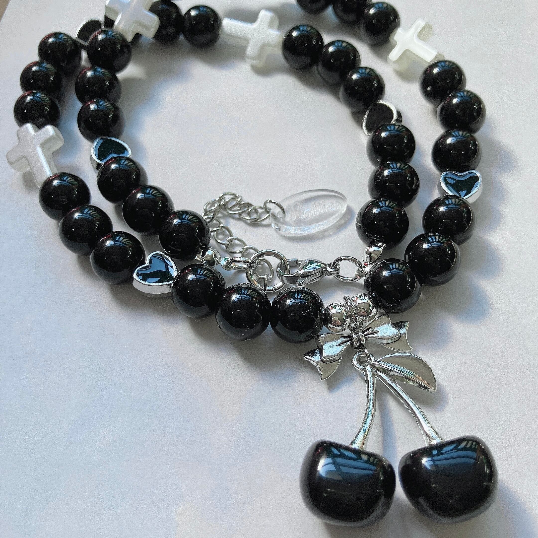 今作はハートとクロスビーズを交えた10mm玉とブラックチェリー♡