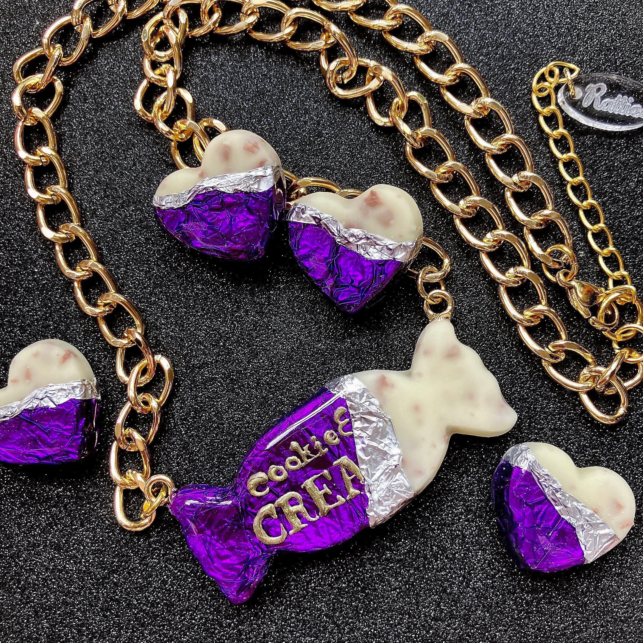 チョコチップを練り込んだホワイトチョコをパープルホイルで包みました。