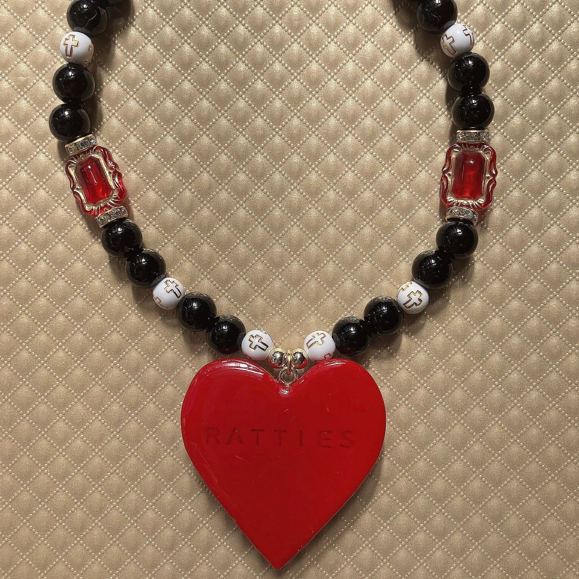 赤いハートには、リボンや翼、星、十字架を配置、下の赤いハートはゴールドスタッズで囲みました。