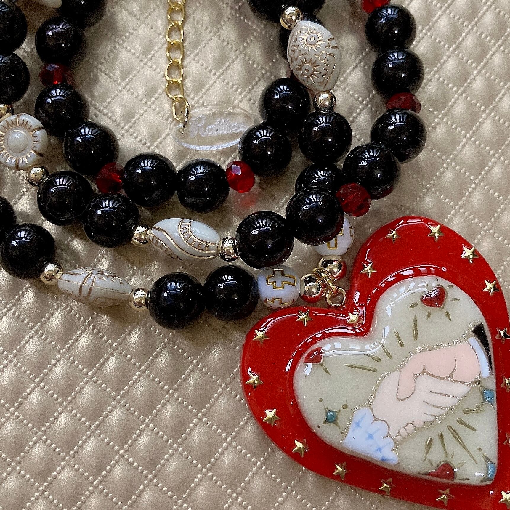 粘土製ハートのネックレス。