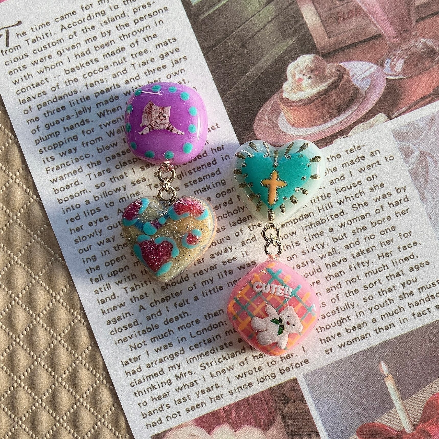 ※粘土はひとつひとつ手作業で形成した後、パーツを貼り付けたり、絵付けをしたりしてレジンコーティングしております。
