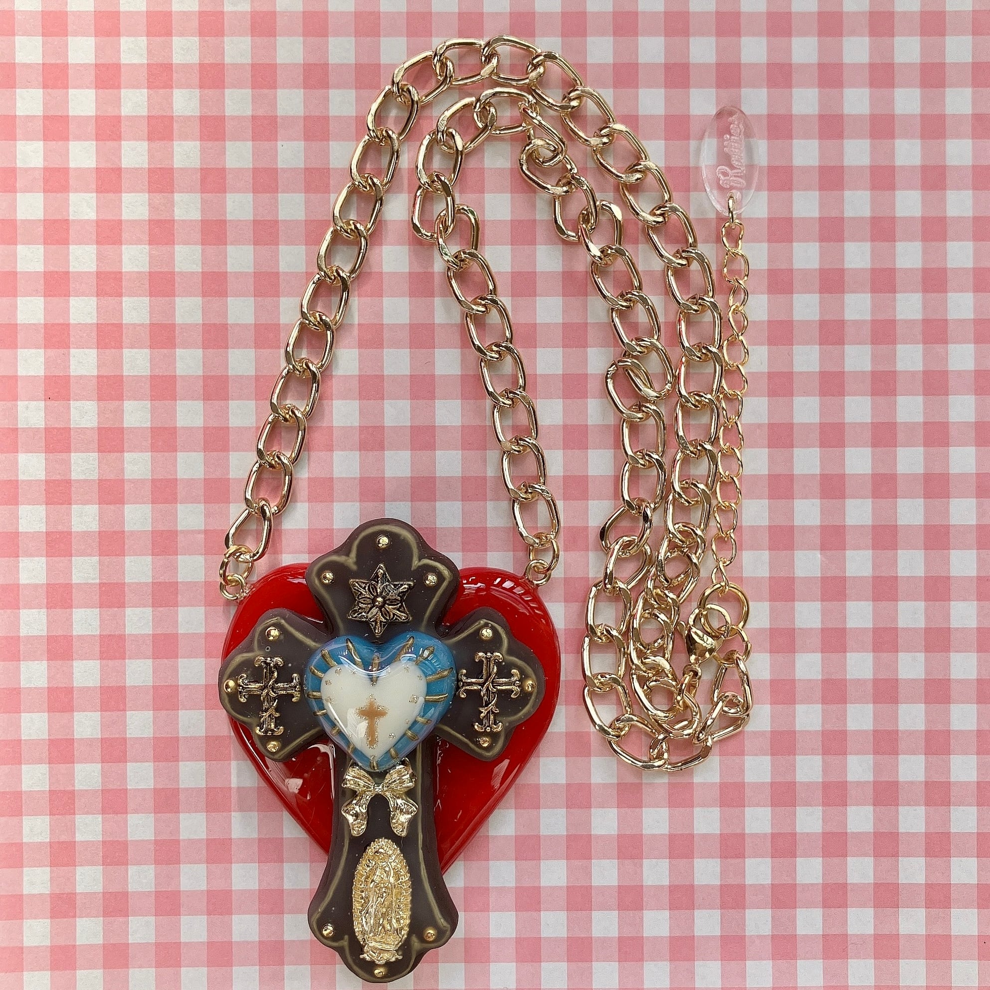 バレンタインシーズン真っ只中、真っ赤なハートにチョコレートカラーの十字架でお作りしました。