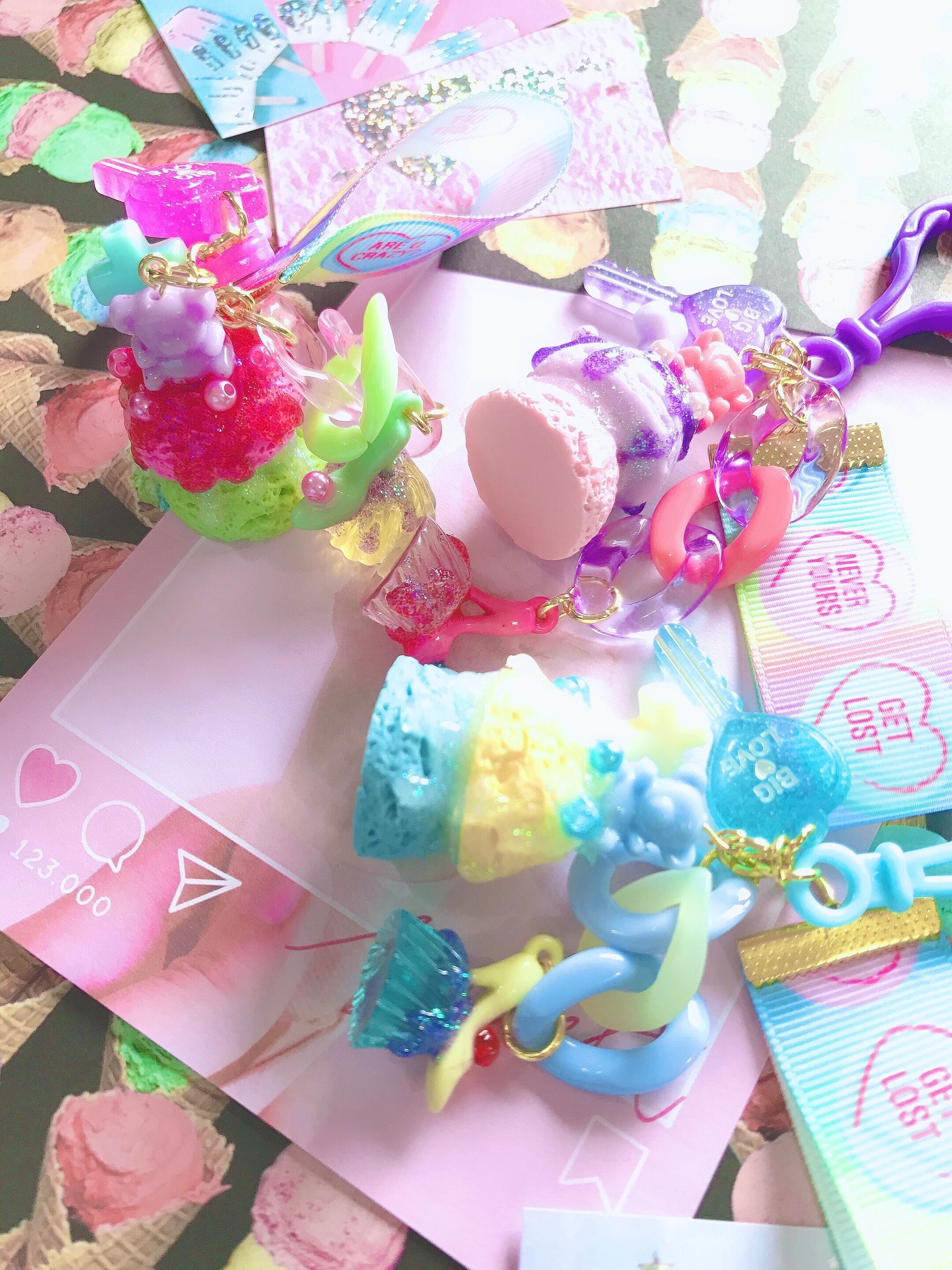 お墓に見立てた2段アイスクリームのキーホルダーです。