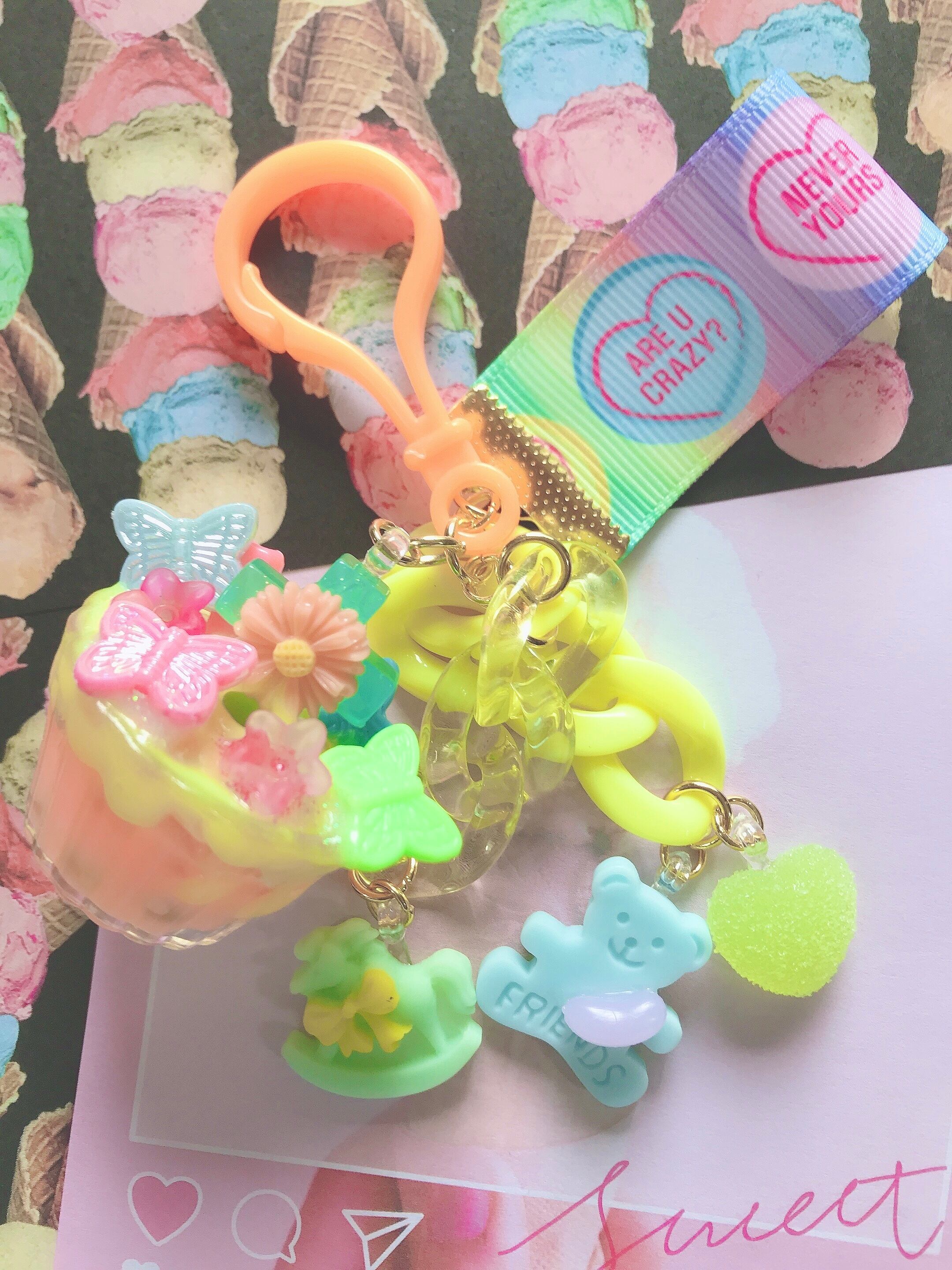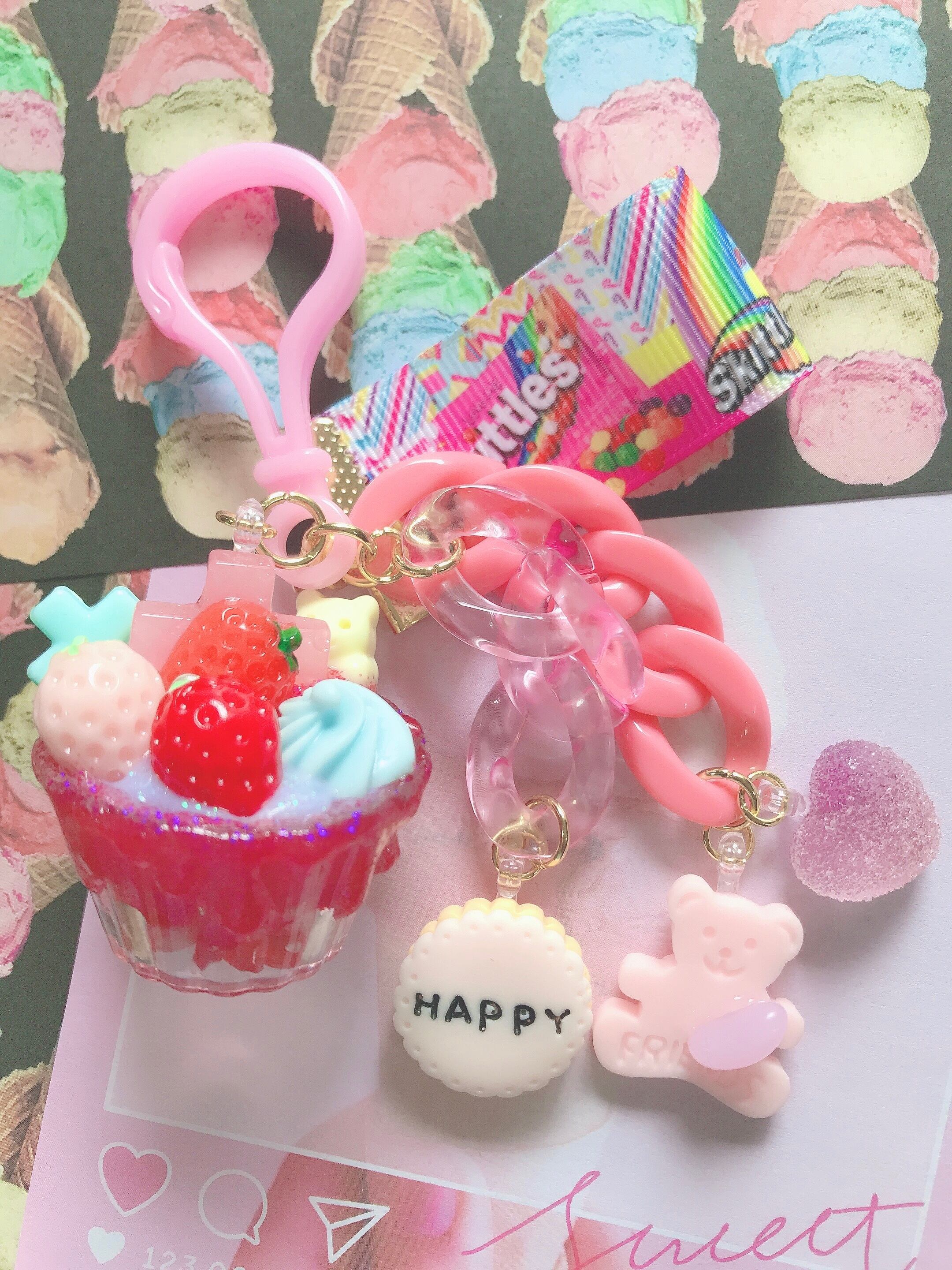 2種類のプラチェーンにはジェリビーンズを抱えたテディベアやお菓子チャームをぶらさげました。