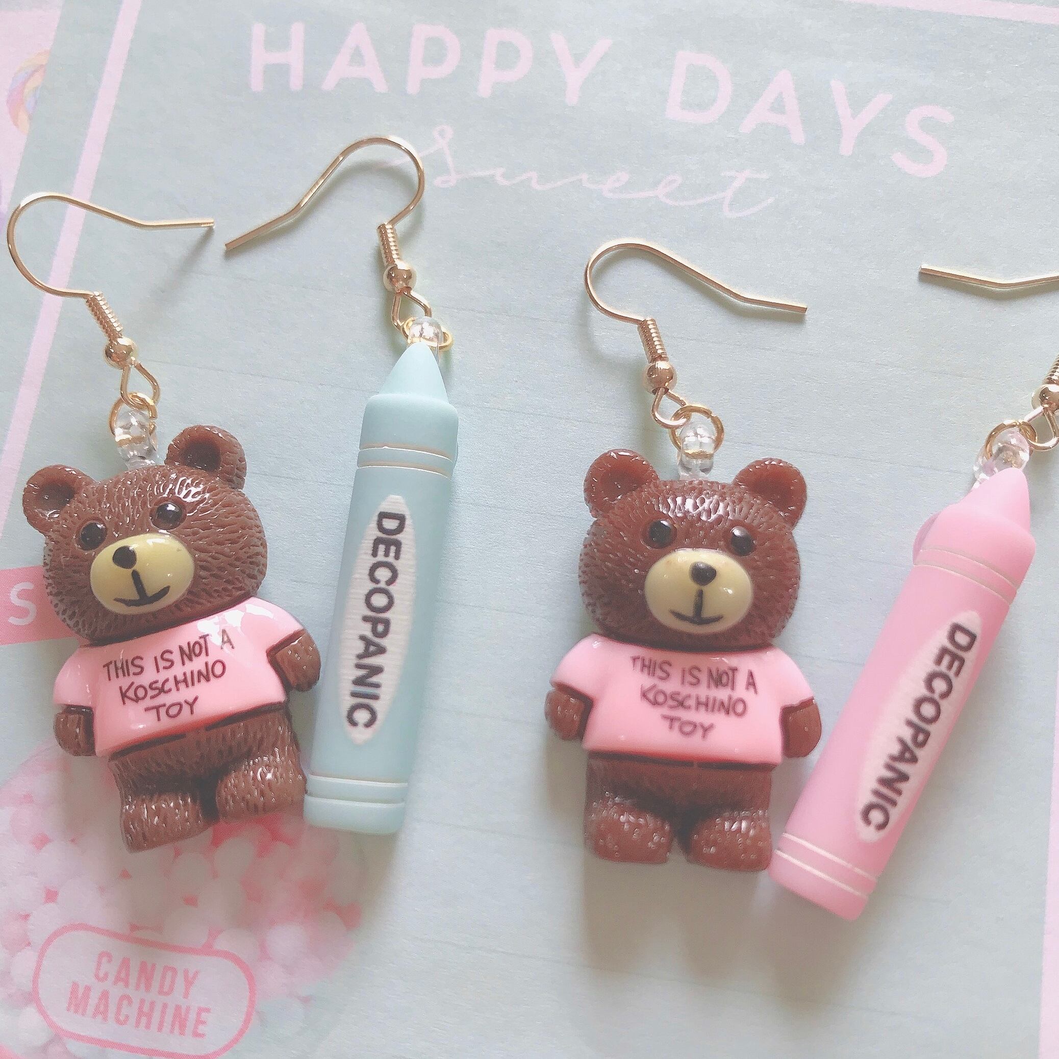 Tシャツベアとパステルクレヨンのピアス
