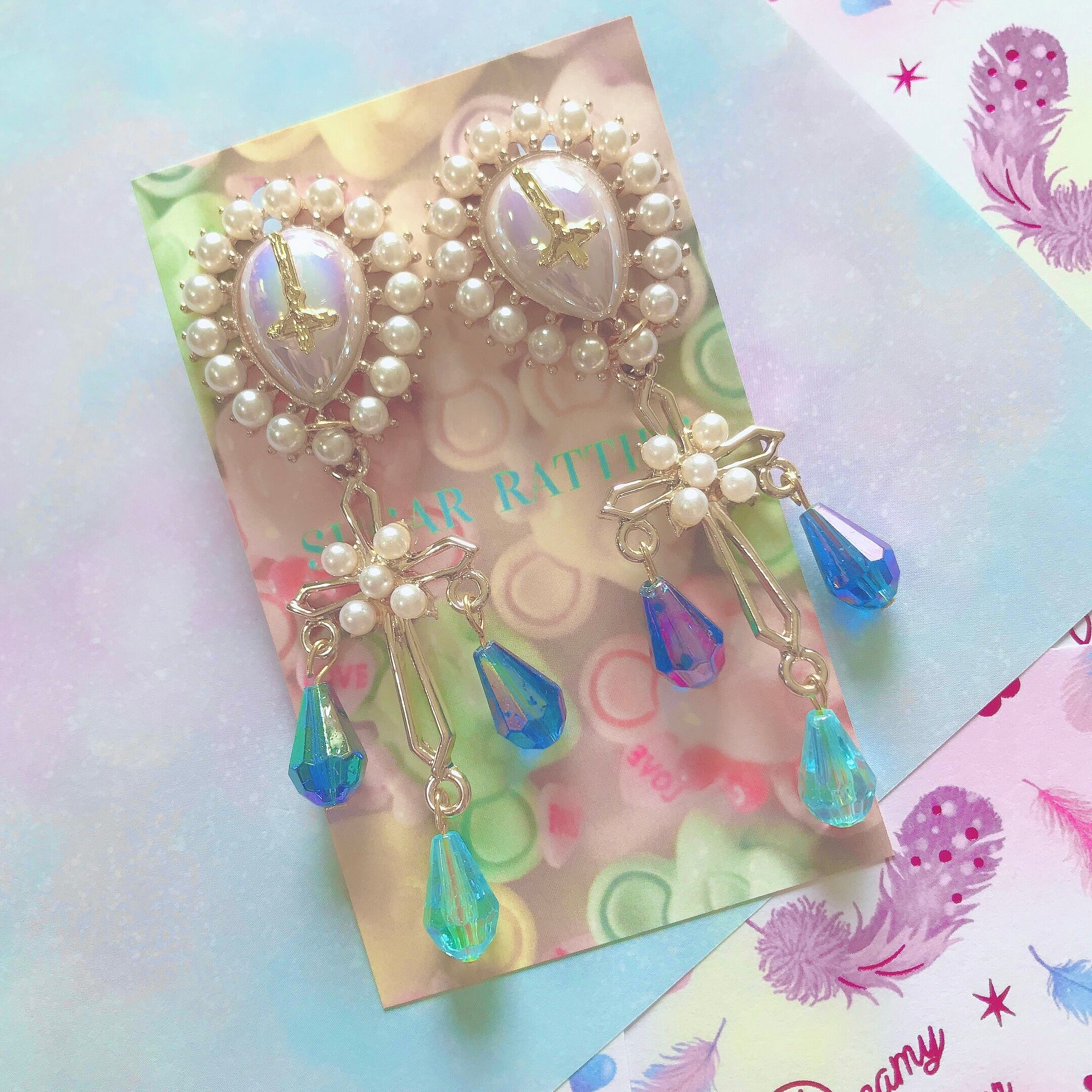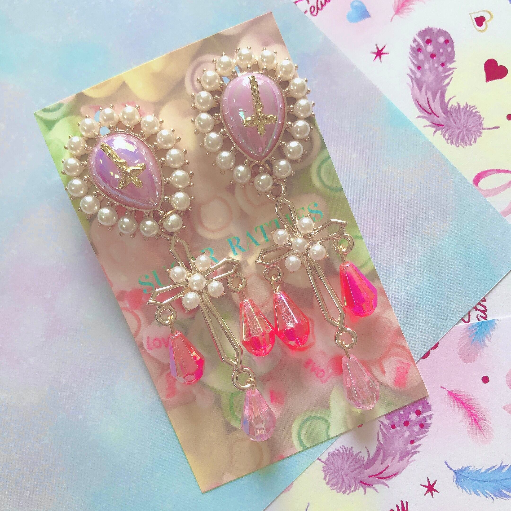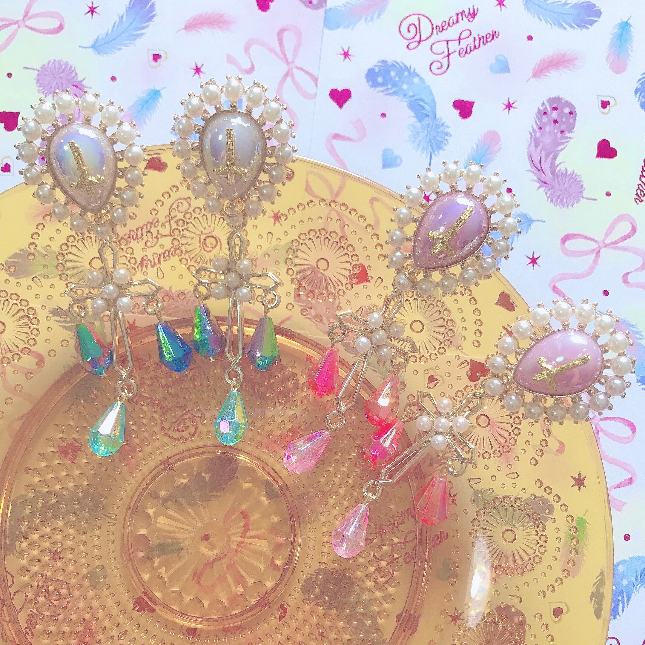 その下にはオーロラに煌めく雫で飾り付けられた十字架が揺れ、キリストを慕い敬うペテロを思い描いたピアスです。