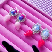 ジャムを垂らしリボンで飾ったビジューからいちごが揺れるピアスです。