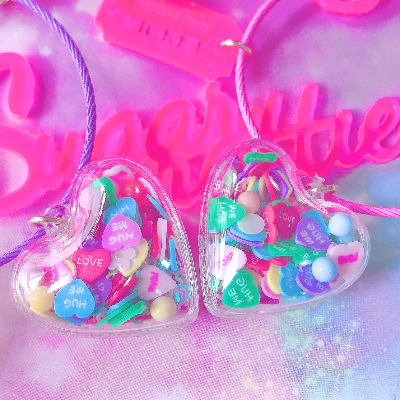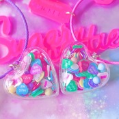 ハートのシャカシャカカプセルや、いろんな形のキャンディチャームなど6つのチャームが揺れるワイヤーキーリング。