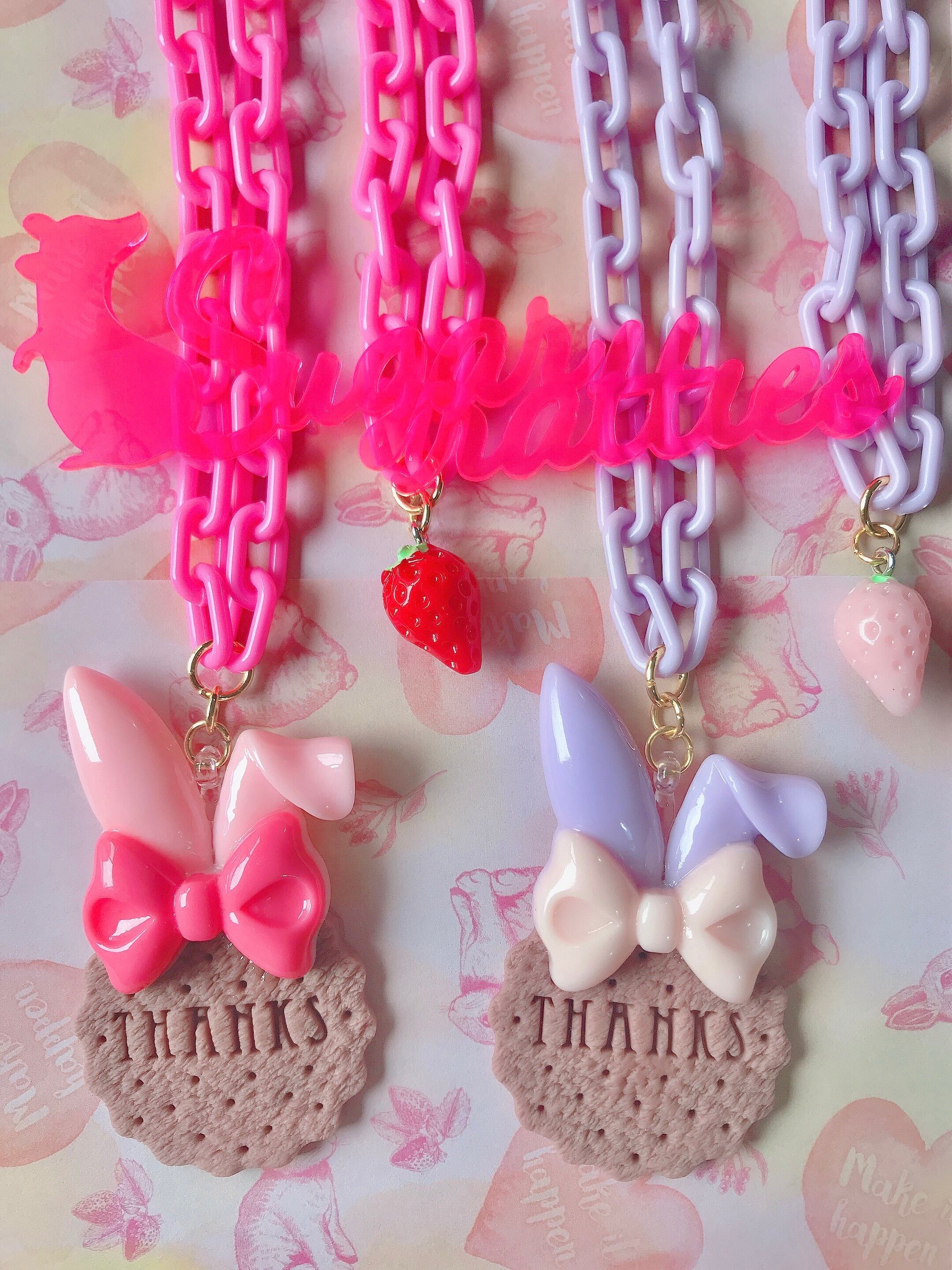 ロゴ入りココアビスケットにうさ耳が可愛いロングタイプのプラチェーンネックレス。