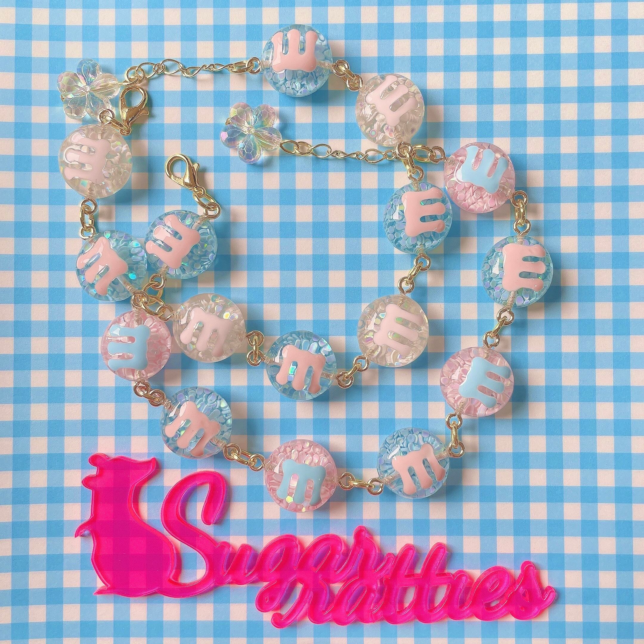 ぷっくりうるつやなホロ入りとうめいmチョコが連なるブレスレット。