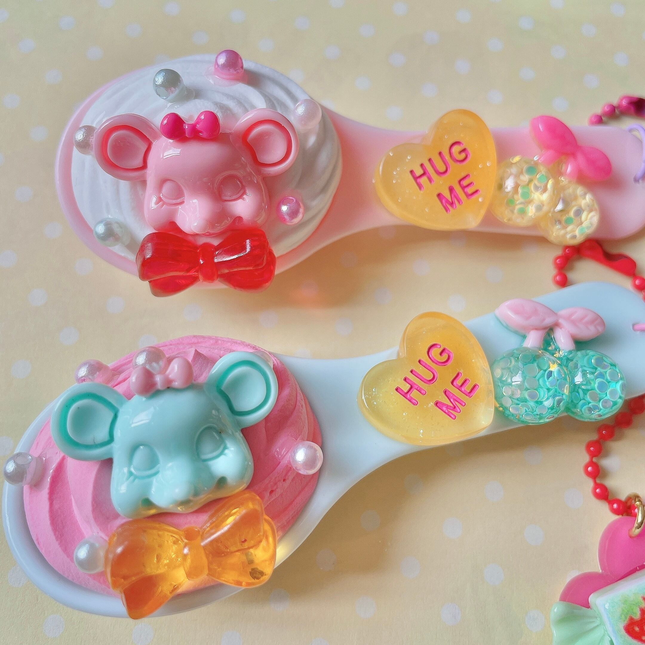 ひとくちスプーンにたっぷりのホイップクリームとリボンでおめかししたねずみちゃんがのったボールチェーンキーホルダー。