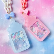 くまちゃんやキャンディハーツ、お星様などがゆったりと動く、優しいミルキーカラーが可愛い哺乳瓶モチーフのプラチェーンネックレス。