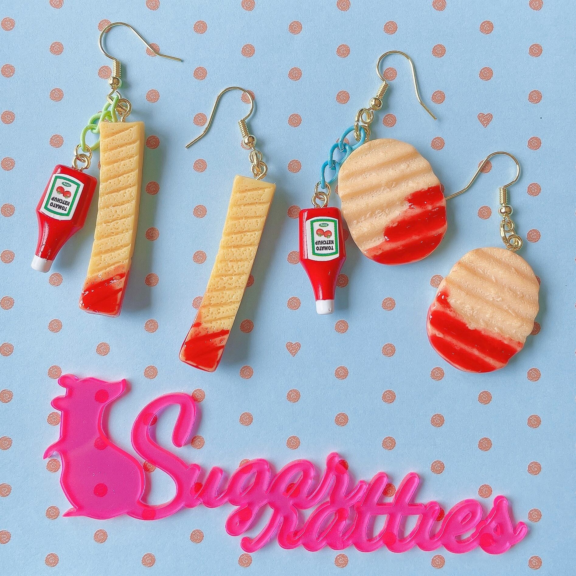 ケチャップ付きのフライドポテトが揺れるピアス。