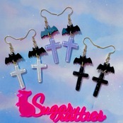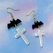 十字架に翼を広げた蝙蝠がとまっているようなピアス。
