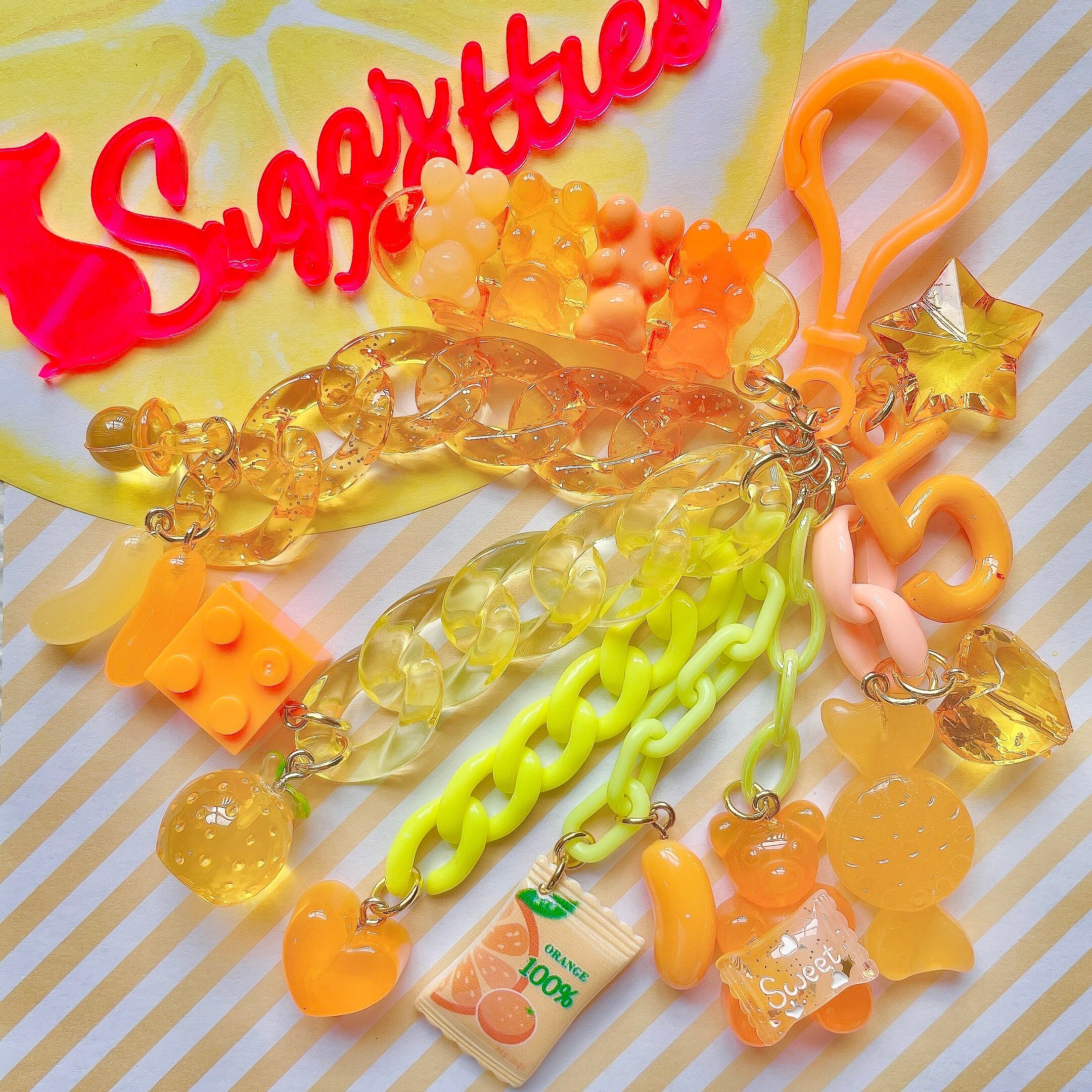 スケボーにのったくまグミもゼリービーンズやナンバーチャーム、みかんなどオレンジづくし!!