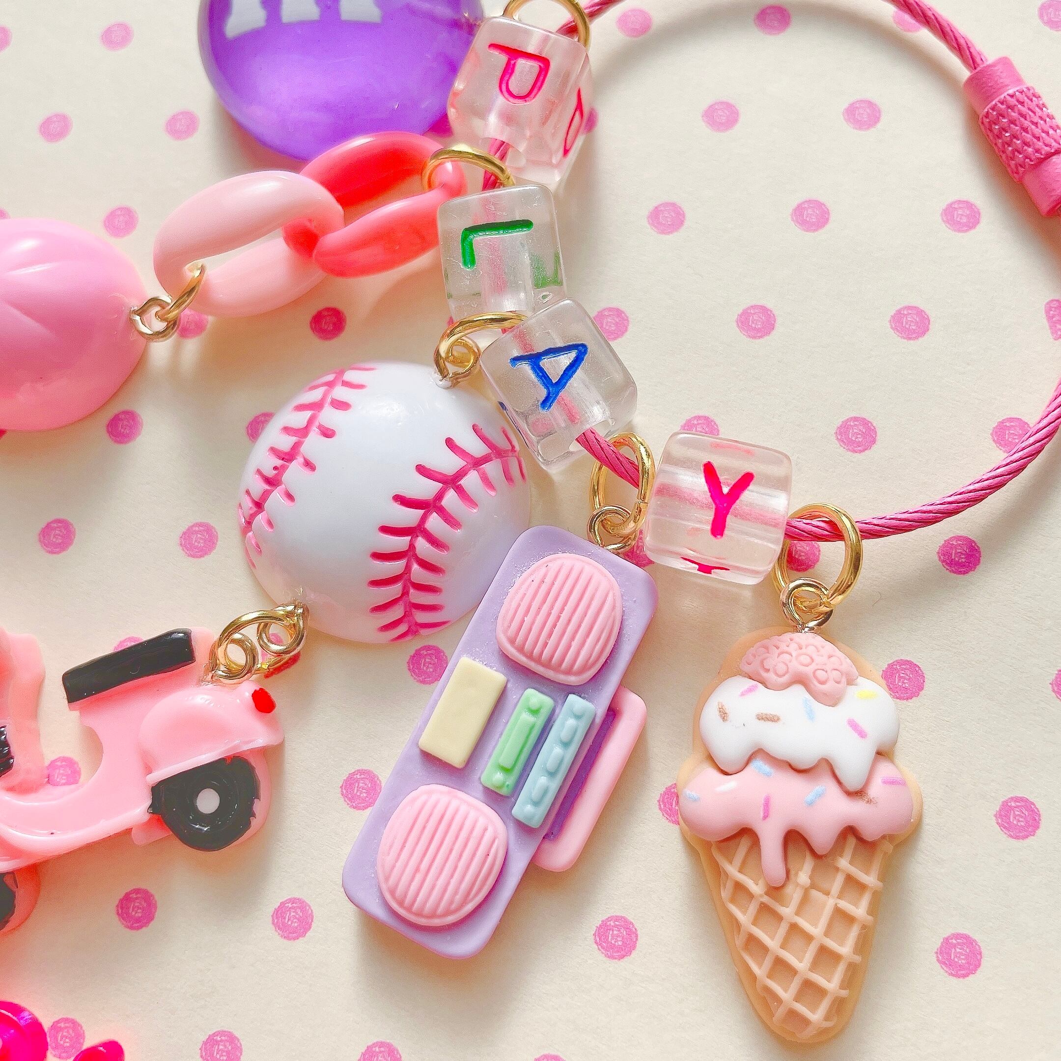 地元のソフトボールチームに所属するピンクが大好きな女の子のワイヤーキーリング。