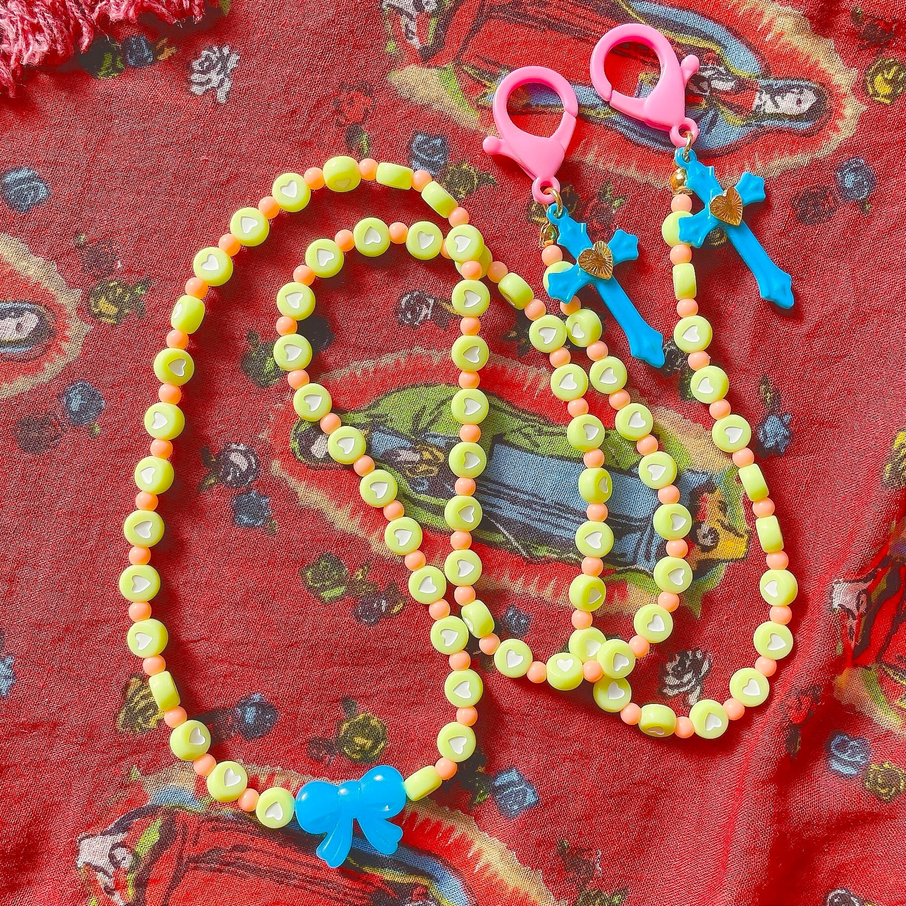 シンプルだけどカラフルなビーズとクロスモチーフがオリエンタルな雰囲気のマスクチェーン。