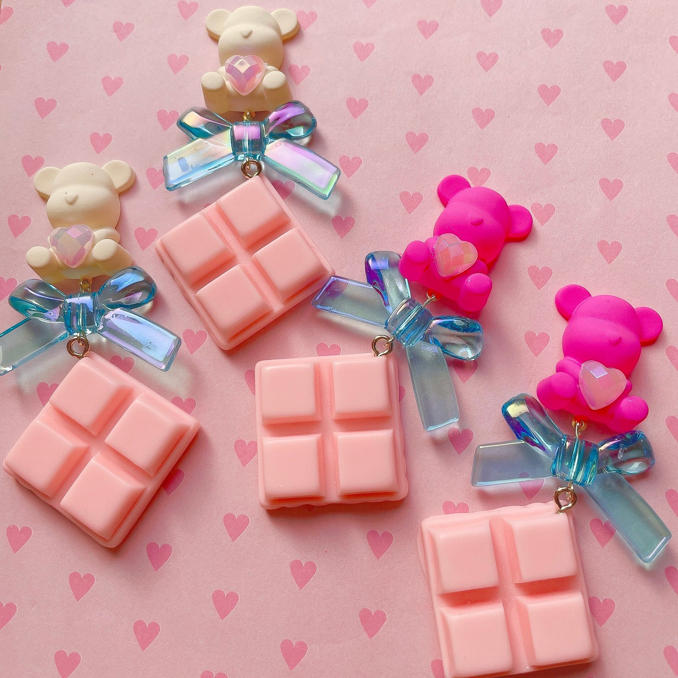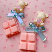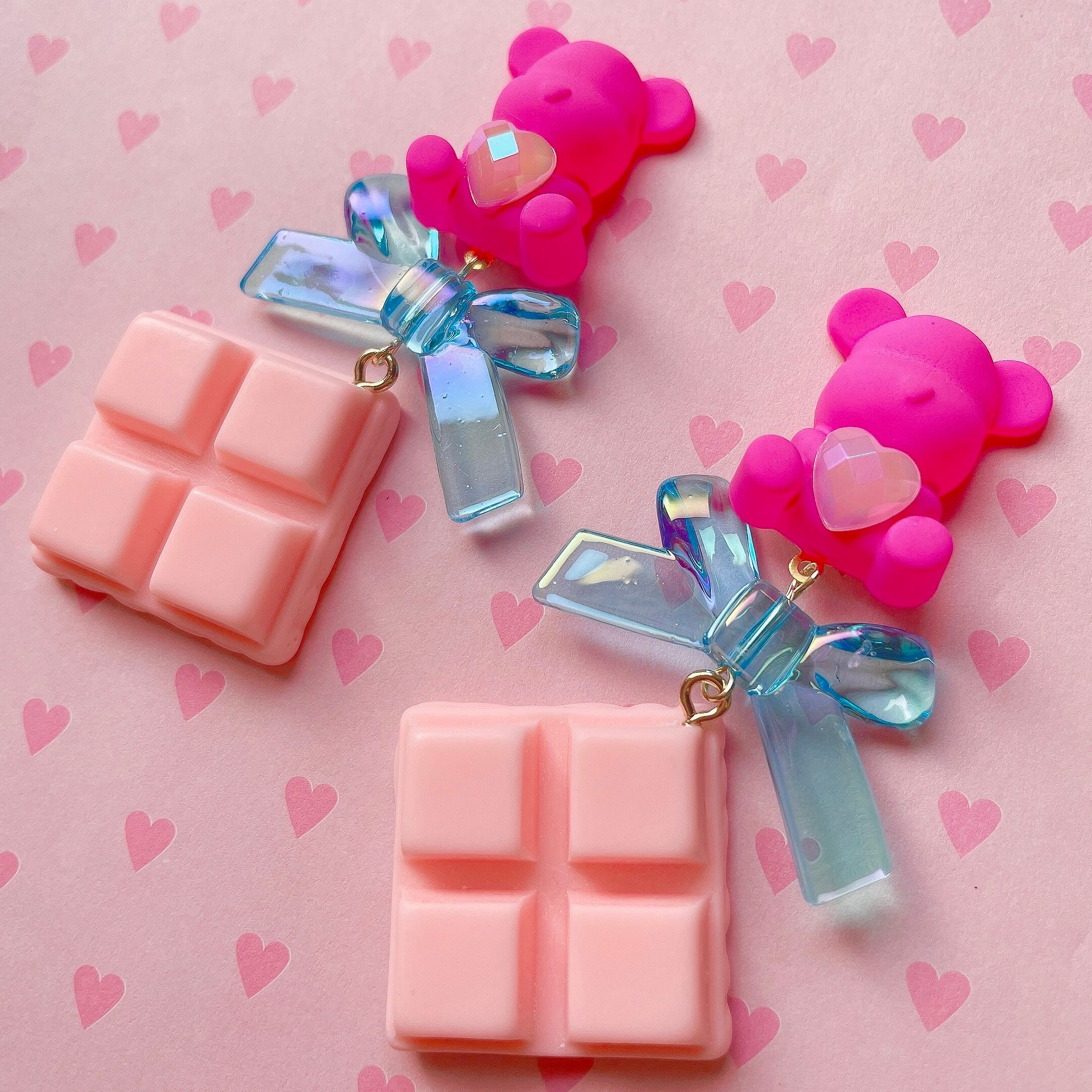 くまの下には煌めくオーロラリボンと、BIGなストロベリーチョコレートが揺れ動きます。