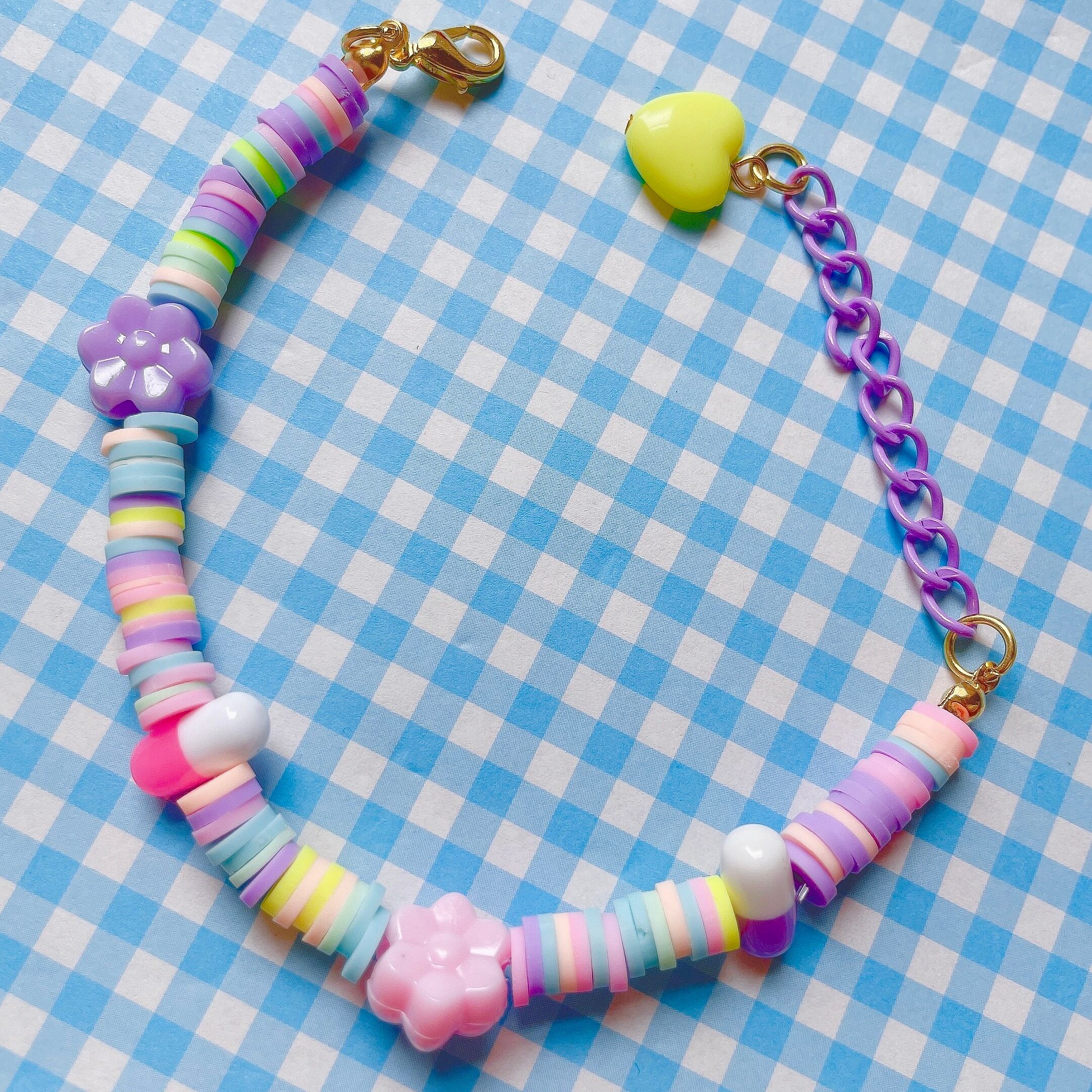 外国の女の子の子ども部屋みたいなキャンディカラーが可愛いドーナツ樹脂フレークのブレスレット♡