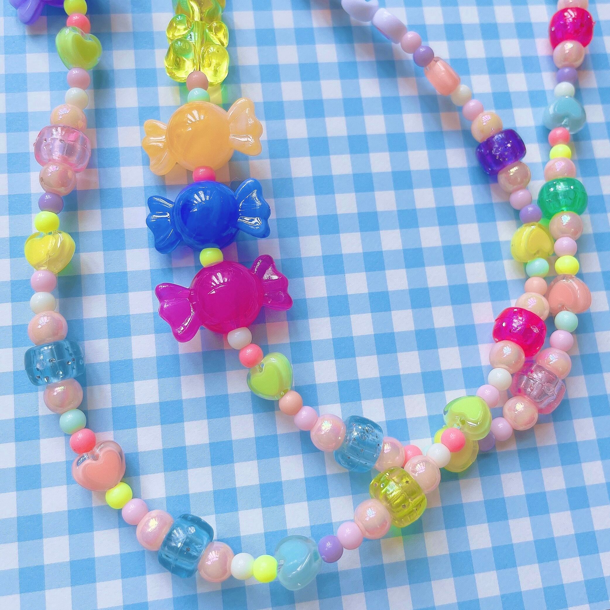 フラットなお花チャームが揺れる、キャンディビーズのマスクチェーン。