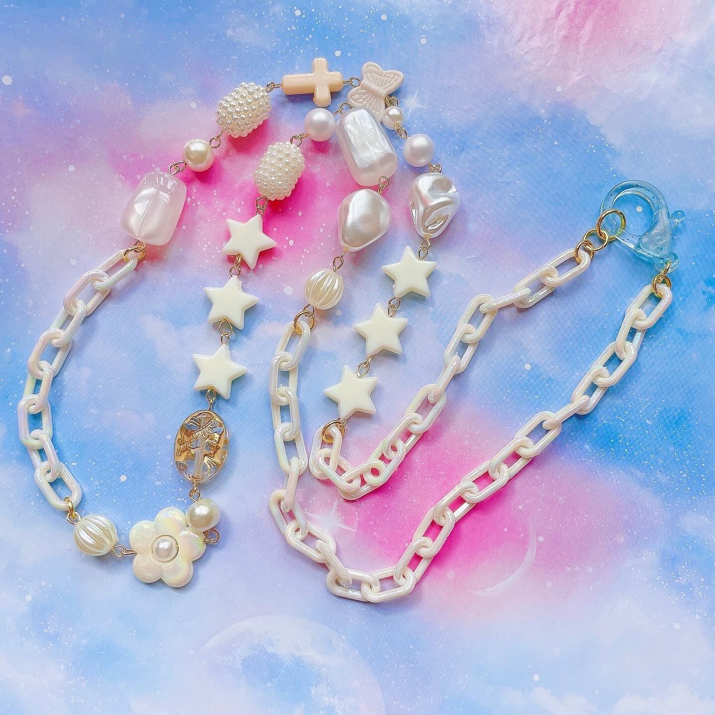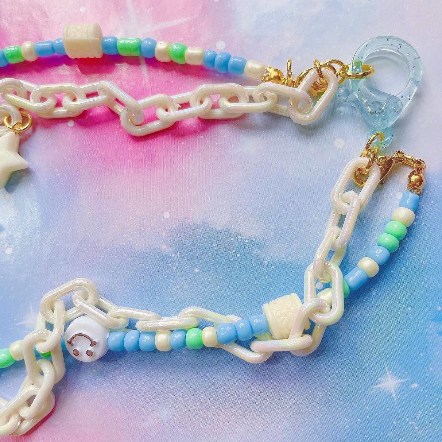 さらに、ブルーのネックレスは両端にカニカンが付いているので、マスクチェーンとしても使用可能です。