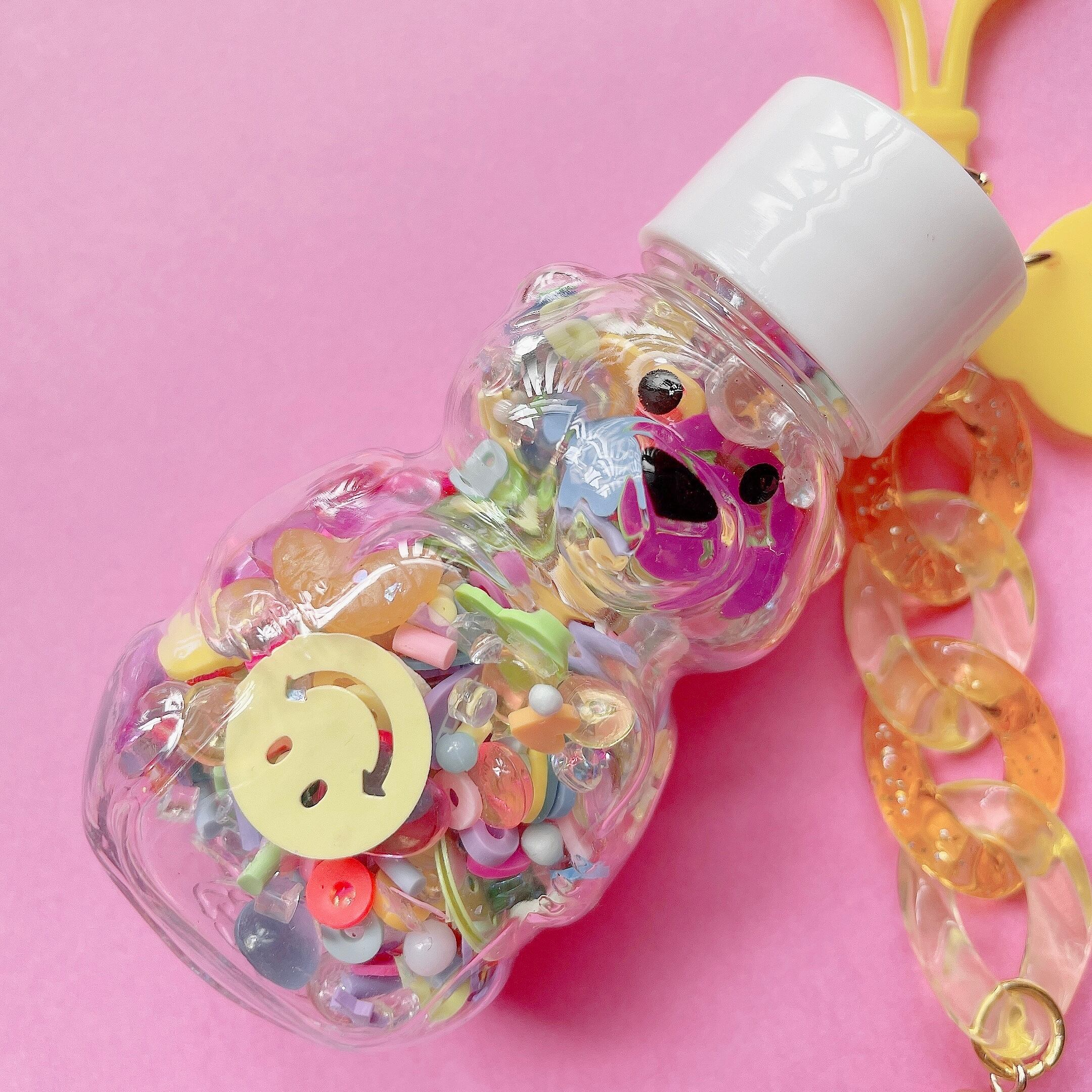 ボトルの中には色んな形のスパンコールや樹脂フレーク、小粒のみかんなどをたっぷり詰め込みました。