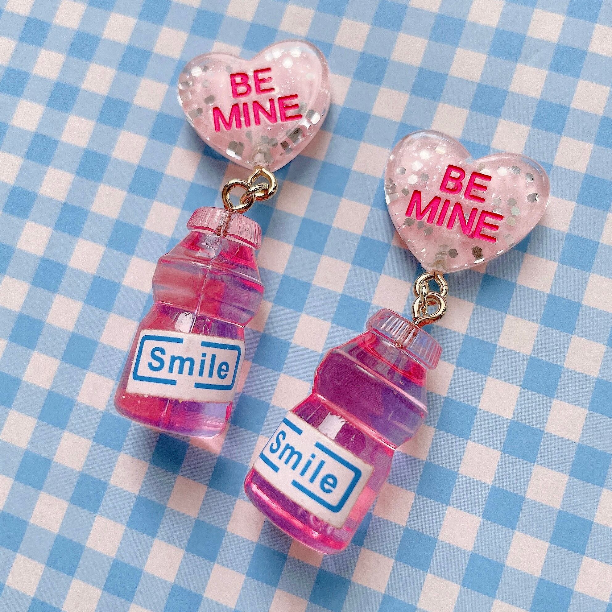 キャンディハーツに埋め込まれたホログラムと、ドリンクのクリア感がきらきらと可愛らしいピアスです♡