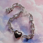 ブラック、シルバーで冷たく退廃的な配色に、くまやハートのモチーフを組み込んだ地雷系アイテム♡