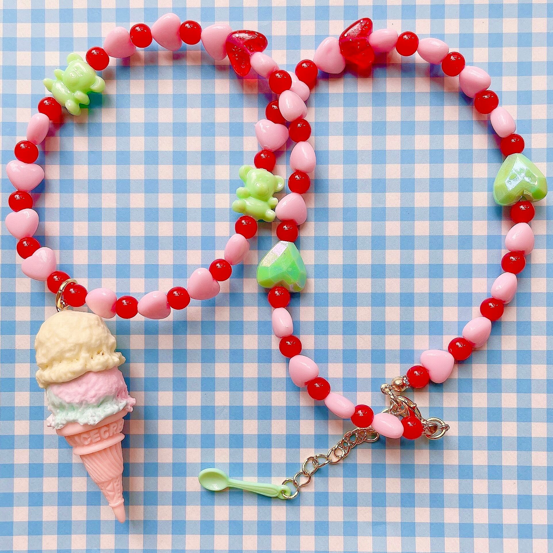 高さ5.5cmのダブルアイスクリームが揺れるビーズネックレス。