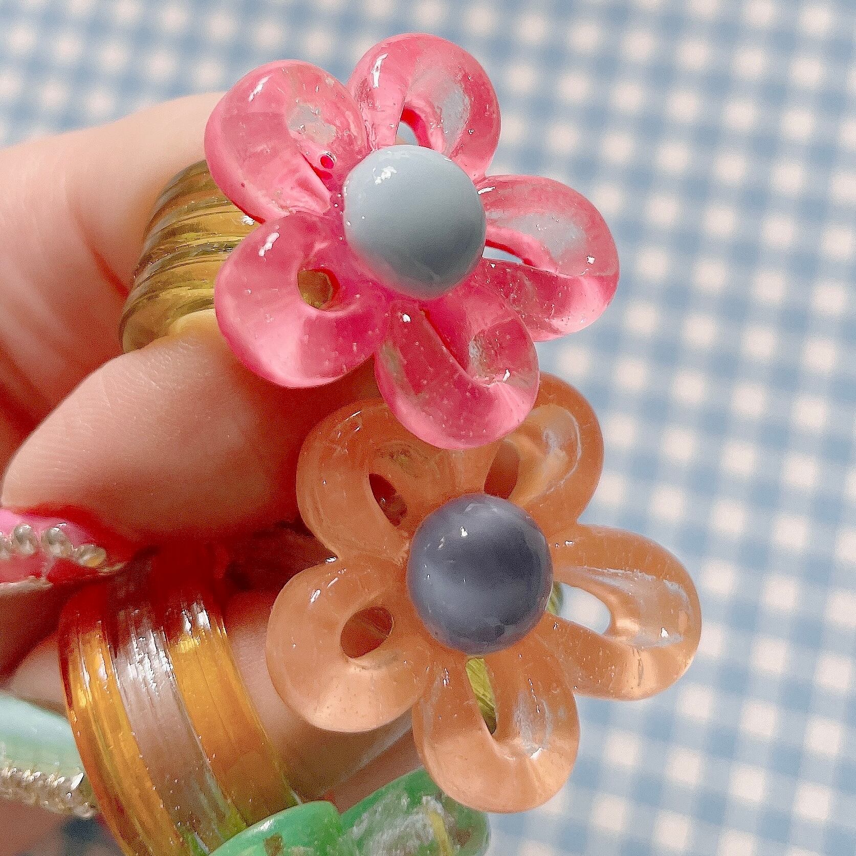 ラメが煌めくぷっくりとしたお花のアクリルリング。
