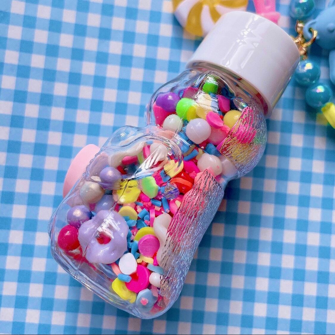 ボトルの中にはカラーミンツや変形ビーズ、チョコスプリンクルなどをたっぷり詰め込みました。