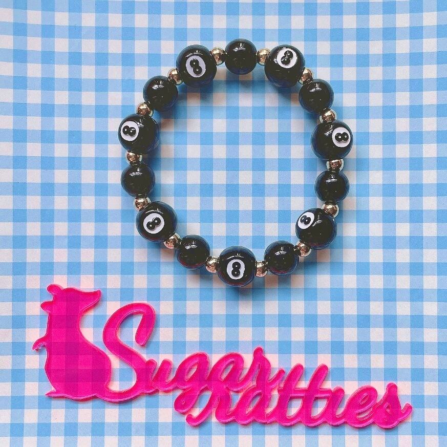 7つの8ボールと10mm玉、メタルビーズのブレスレット。