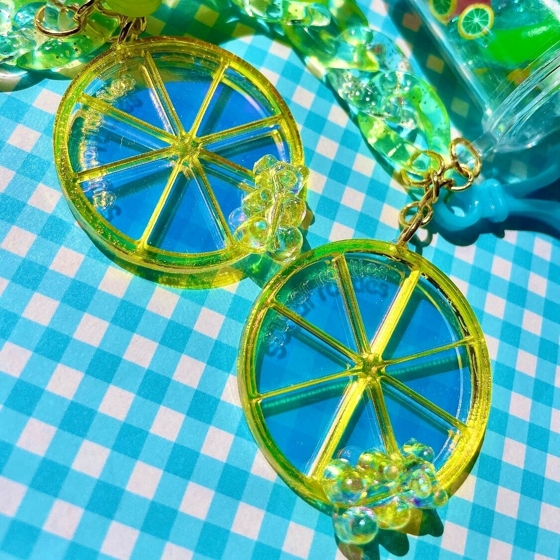オーロラクリアのグミベアをのせた、SUGAR RATTIESロゴ入りレモンのアクリルチャーム付き。