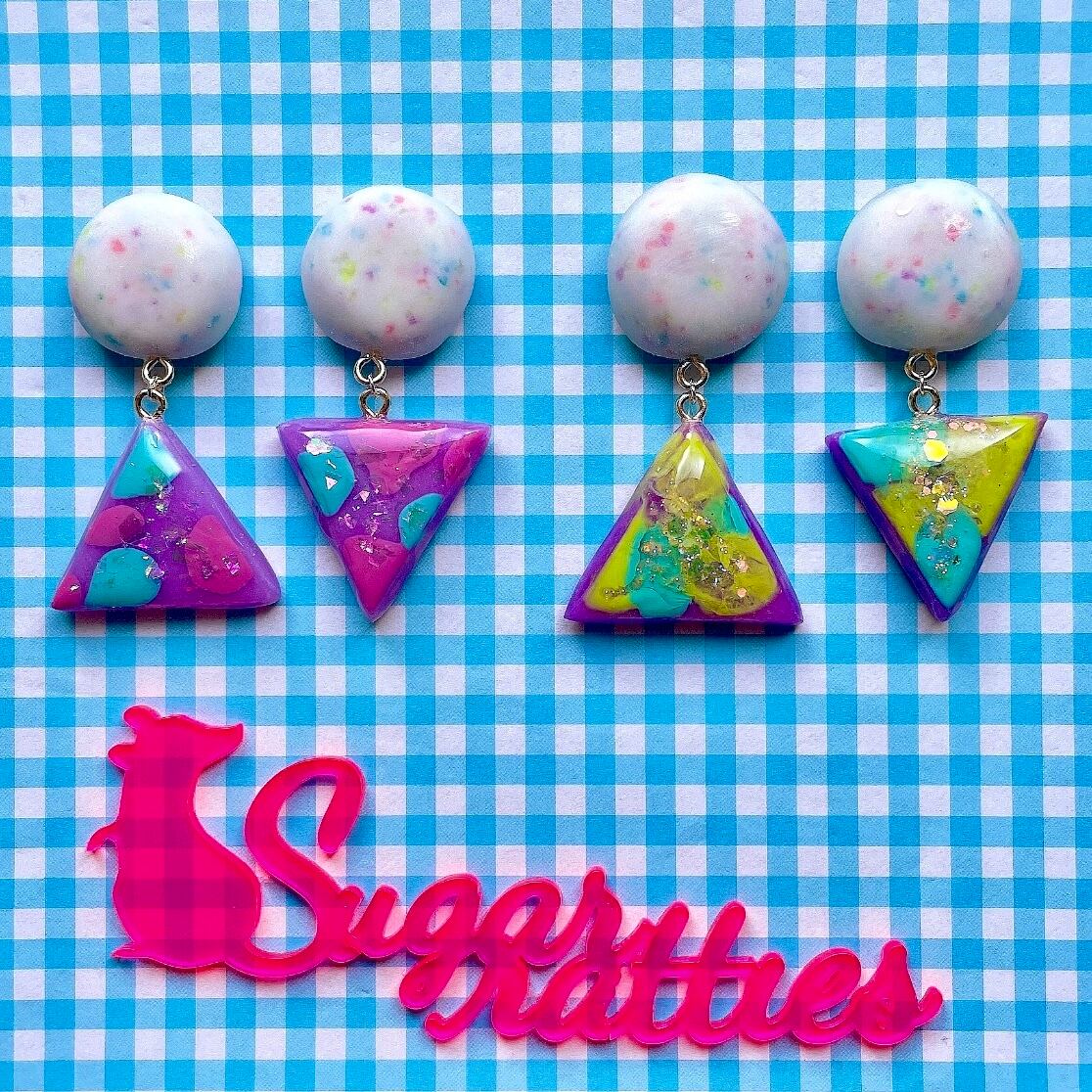 粘土とレジンで仕上げたトライアングル型ピアス第二弾。