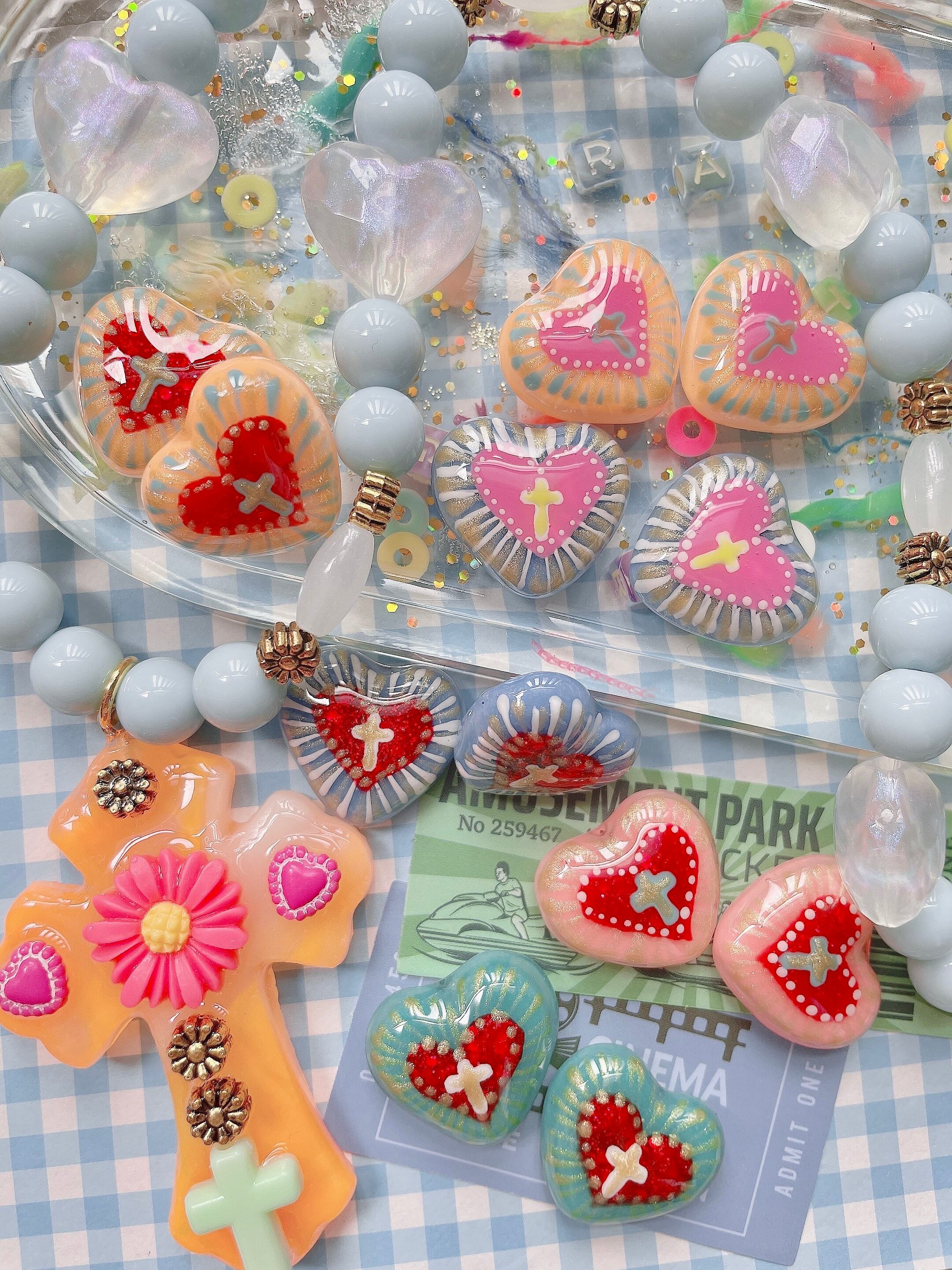 手描きならではの不揃いさは遠い外国のお土産感もあり、SUGAR RATTIESの甘くてポップな世界にオリエンタルなスパイスをひと振りしたような雰囲気です。
