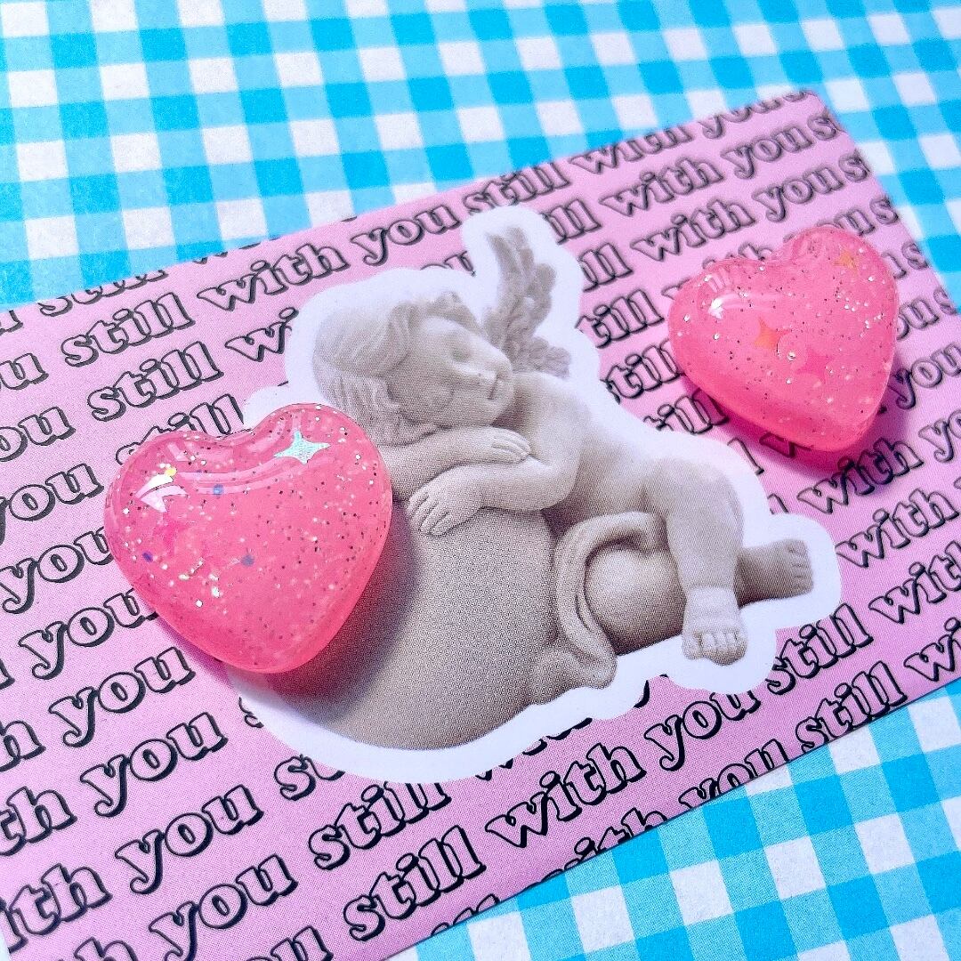 若干の透け感があるキャンディのようなハートにはラメを練り込んであり、表面だけでなく奥からの煌めきも素敵です✧