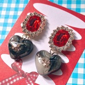 過去に販売したHEARTピアス【Noir】と、レッドのストーンパーツを組み合わせたピアス。