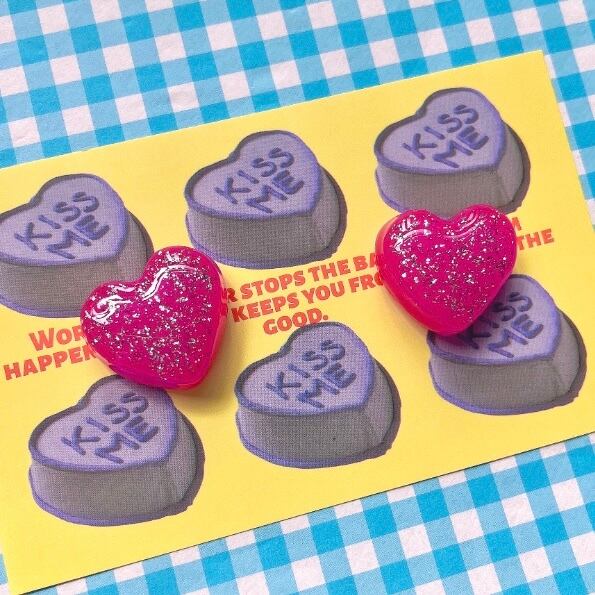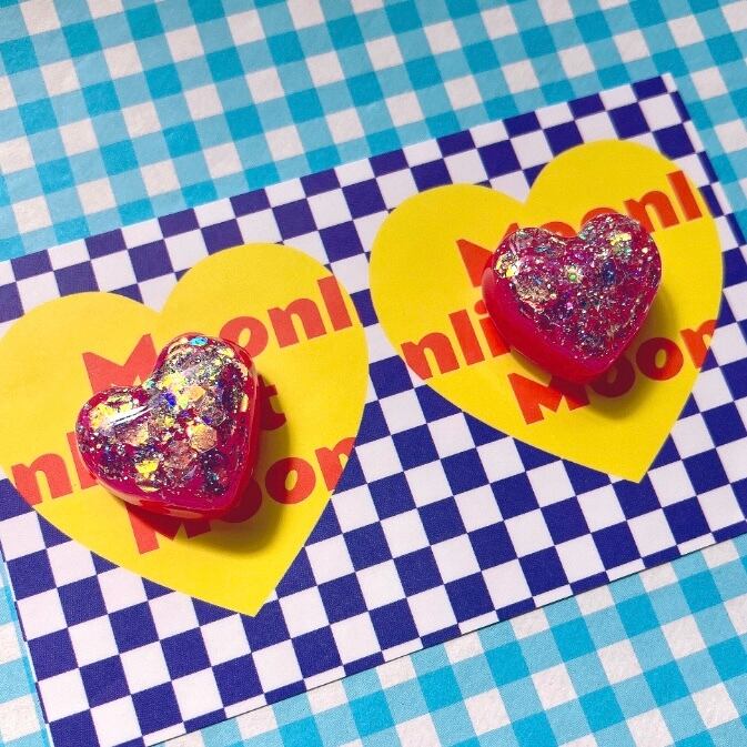 こちらは透け感あるバービーピンクに細かいシルバーラメや、ホログラムを敷き詰めたギラギラなグリッター感が耳元を華やかに飾ってくれます。