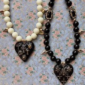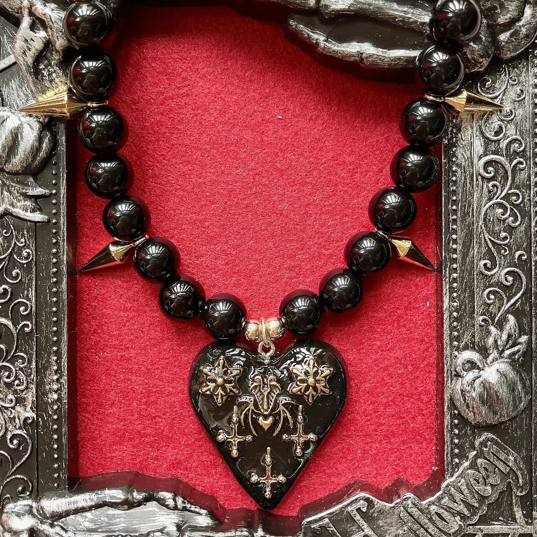アンティークゴールド調のメタルパーツで飾ったハートのネックレス。