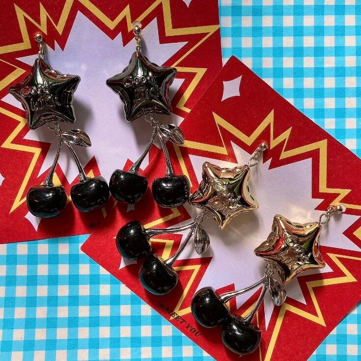星型バルーンにチェリーが揺れるピアス/イヤリング。