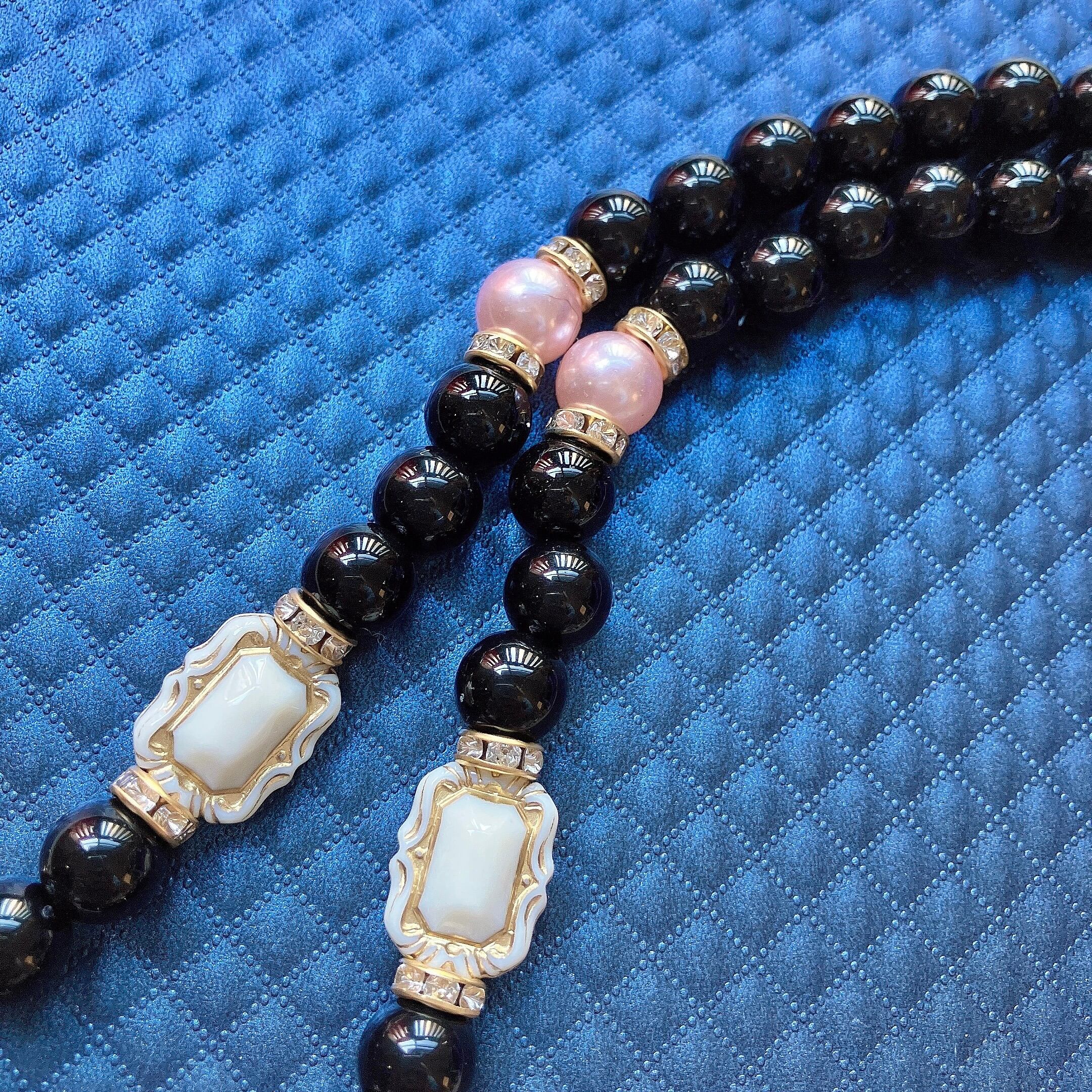 10mmボールの間には、デザインビーズや十字架チャームを挟みました。
