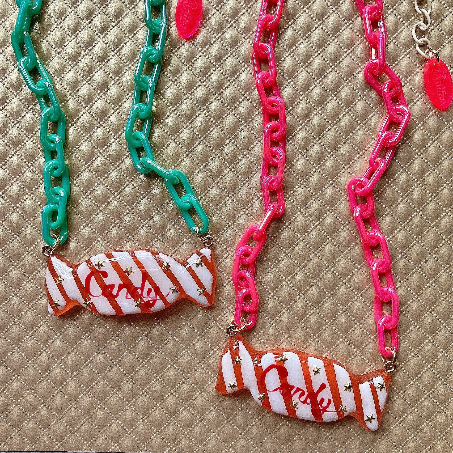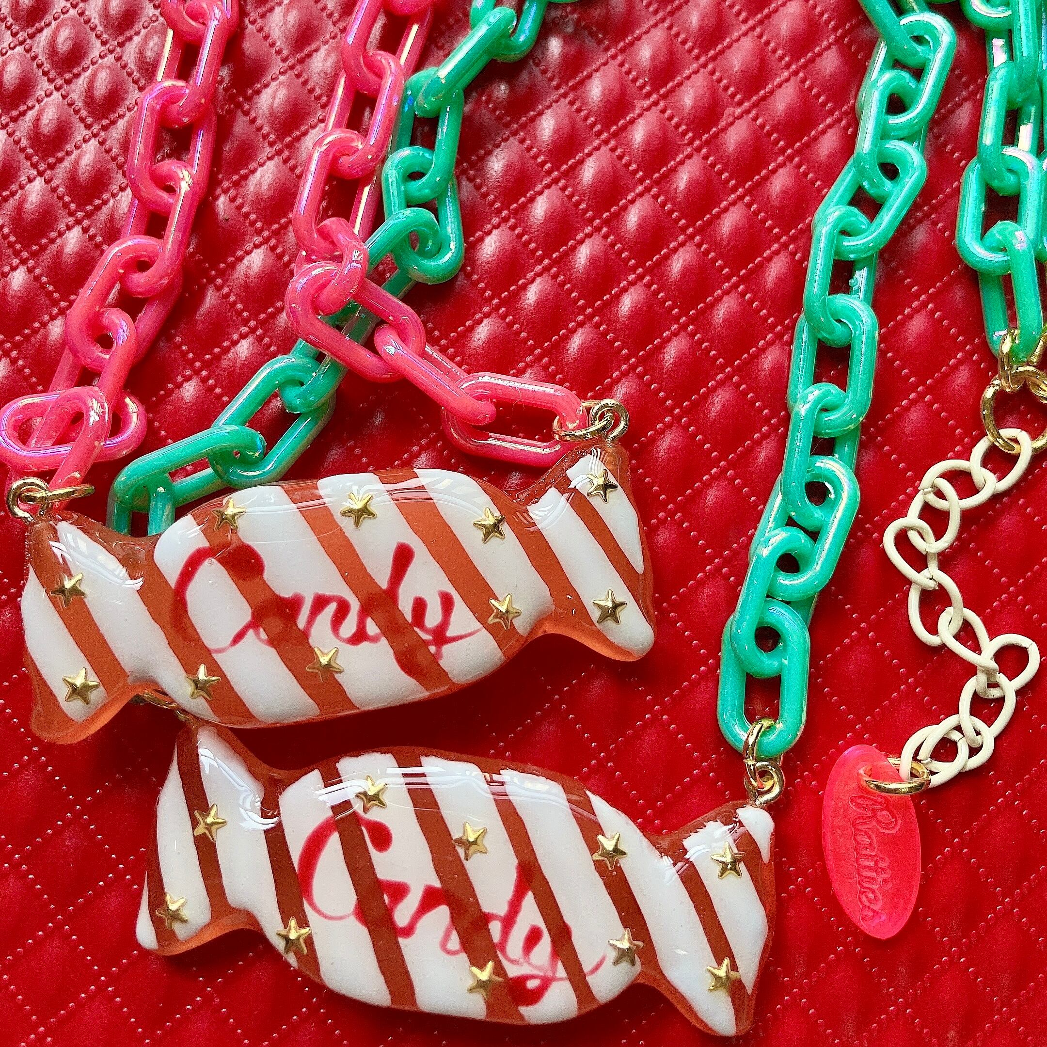 キャンディが揺れるプラチェーンネックレスにクリスマスを意識したストライプ柄が新登場!