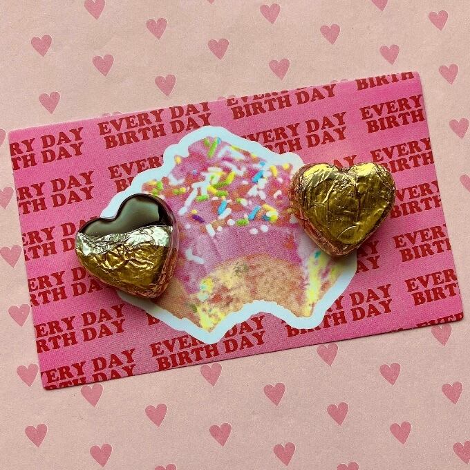 バレンタインシーズンに合わせて、チョコレートカラーのハートを、ゴールドのカラーホイルで包みました♥