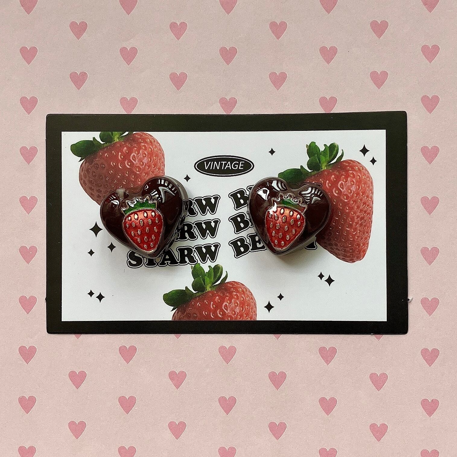チョコレートカラーとホワイトが溶け合うマーブル模様に、苺のメタルパーツを埋め込みました。