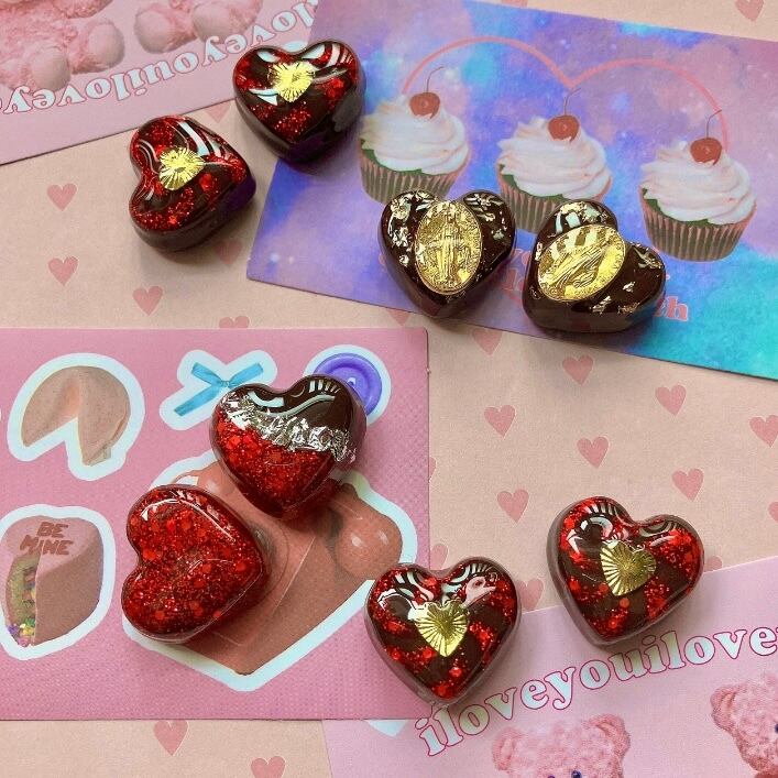 程よい厚みのあるハートモチーフは、角を無くしレジンでコーティング。ツヤ感と滑らかさが特徴です。