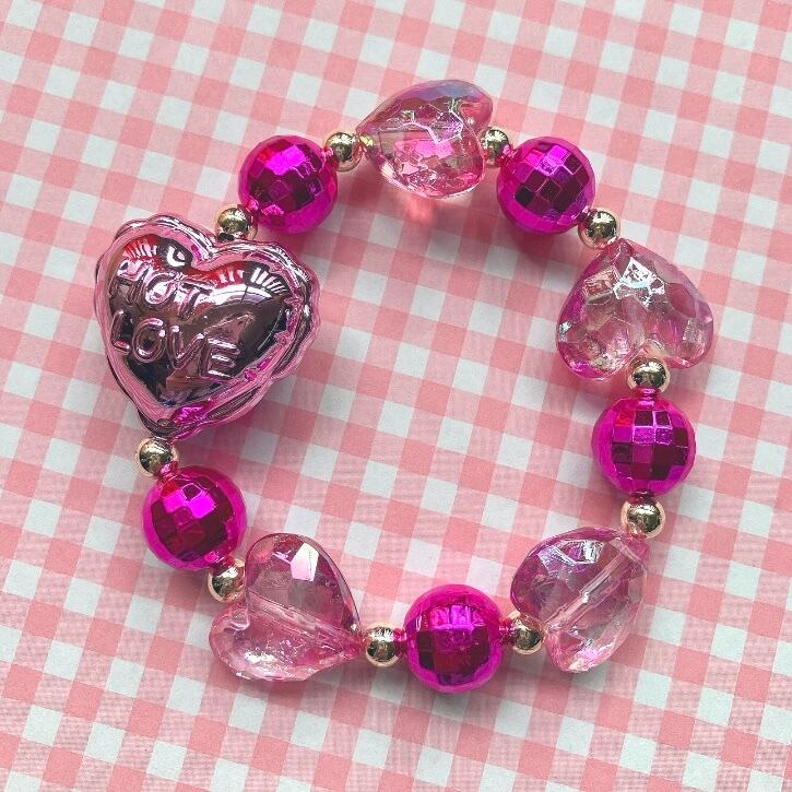 メタリックなバルーン風ハートのブレスレットのゴムブレスタイプ。